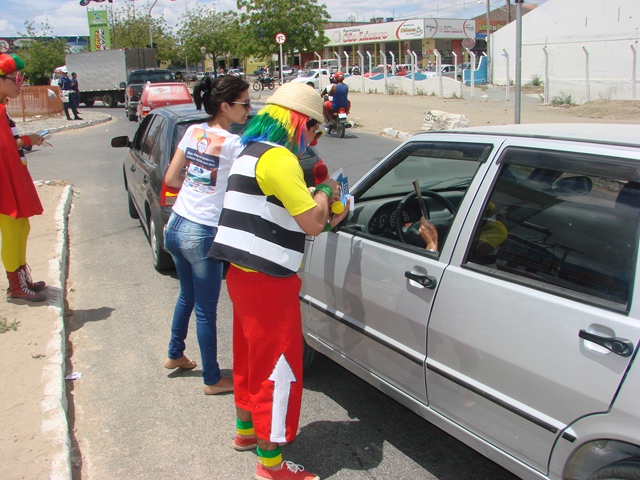 Foram distribuídos aos motoristas panfletos e adesivos alusivos a campanha, com os inscritos