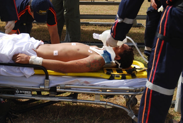 Devido à gravidade dos ferimentos, um helicóptero da Defesa Social foi solicitado
