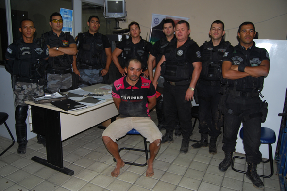 Efetivo que participou da operação, juntamente com Edilson, um dos traficantes presos. Fotos: Fernandes Emílio.