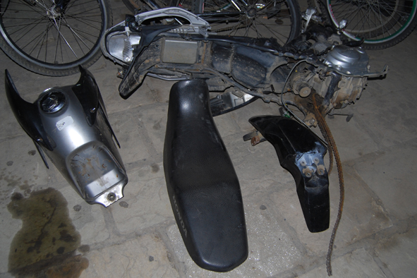 Peças de moto roubada. Fotos: Fernandes Emílio.