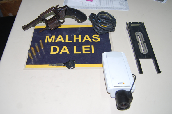 Além da câmera, um revolver calibre 38, com quatro munições intactas,