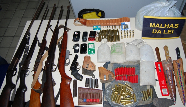 Uma operação realizada pela Equipe Malhas da Lei, da Polícia Militar, conseguiu apreender seis armas de fogo, de pequeno e grosso calibre, dezenas de munições e uma moto roubada, na noite desta quinta-feira (15), em Jataúba.